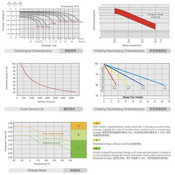 運用 特點(diǎn) 1.綠色能源系統,例如太陽(yáng)能、風(fēng)能等 1. 循環(huán)使用性能良好,增強過(guò)度充電承受能力和過(guò)度放電恢復能力 2. 太陽(yáng)能電力站,信號站和測量站 2. 高純度原材料, 確保低自放電率 3. 電信系統 3. 氧氣重組技術(shù),密閉免維護 4. 街道標示,公路鐵路交叉口,應急照明和紅綠燈 4. 更低的酸密度,充足的電解液和更寬的極板之間的距離有利于蓄電池在低溫下作業(yè),并且降低極板的腐蝕速度 5. 醫療設備和電動(dòng)工具 5. 高品質(zhì)的AGM隔板和高效率的蓄電池管理體系使得蓄電池的使用壽命更長(cháng) 6. 警報安裝系統,銀行系統和航海系統等等 6. 特別的排氣閥設計有利于控制水分的流失并且預防空氣和火花進(jìn)入蓄電池里面
